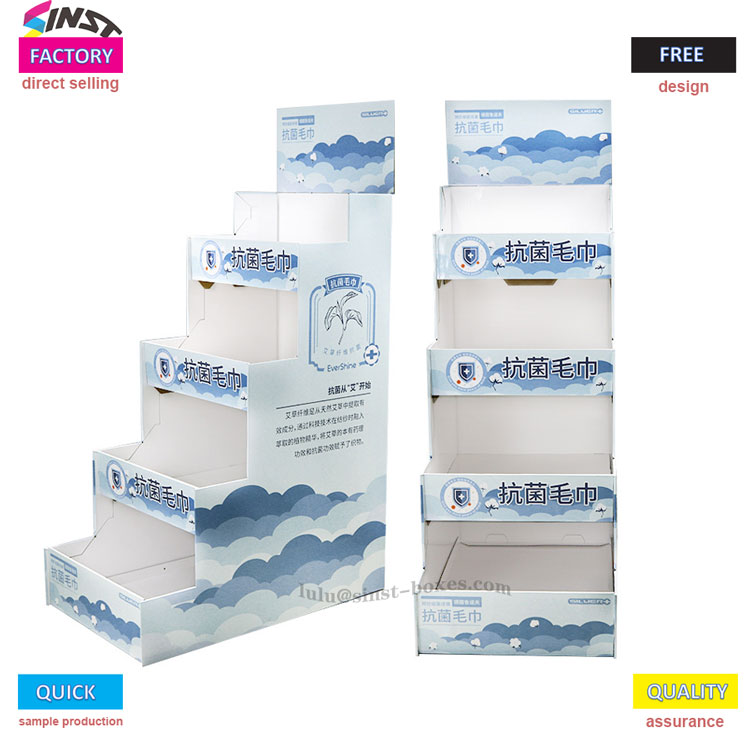 Solange Sie sich für den Handtuchständer aus Karton von SINST PRINTING entscheiden, können alle Probleme leicht gelöst werden. Wir verfügen über ein professionelles Team, das Ihnen effektive Designlösungen bietet, und natürlich verfügen wir auch über professionelle Druckausrüstung, um die Lieferung innerhalb der von Ihnen angegebenen Zeit abzuschließen. Wir sind eine leistungsstarke Fabrik mit garantierter Lieferzeit und Qualität.
