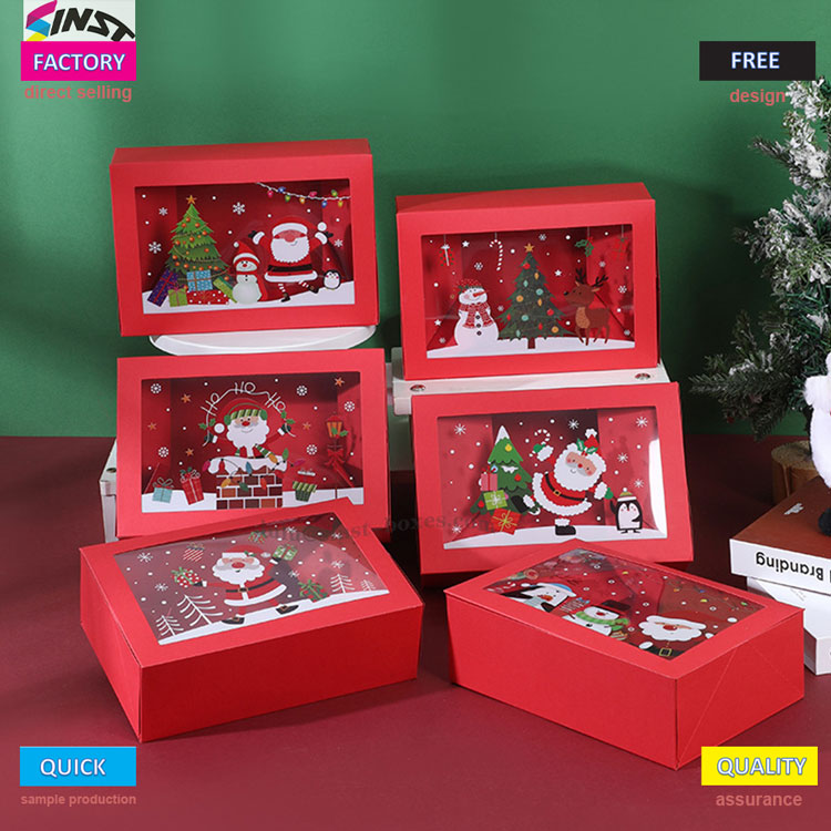 Diese weihnachtliche Süßigkeitenschachtel hat einen warmen roten Hintergrund, einen rechteckigen Kastenkörper und ein transparentes Fenster, wie ein Fenster, durch das man einen Blick auf ein Wintermärchen werfen kann. Diese weihnachtliche Süßigkeitenschachtel besteht aus hartem Papiermaterial, in dem die Süßigkeiten ausgestellt werden können und das über ein gewisses Maß an Stabilität verfügt. Es kann an Alltagsgegenstände wie Schokolade, Desserts, Kekse, Gummibärchen usw. angepasst werden; Es ist nicht nur ein süßer Behälter für Süßigkeiten, sondern auch eine Weihnachtsdekoration für den Schreibtisch. Wenn Sie es anderen für den persönlichen Gebrauch schenken, kann dies die Urlaubsstimmung aufhellen und jede Süße in ein zeremonielles Gefühl verwandeln.