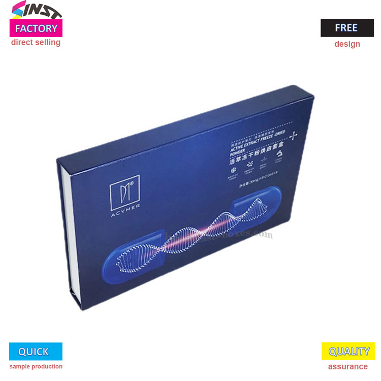 Diese hochwertige Geschenkbox für ätherische Öle zeichnet sich durch tiefes Blau als Hauptfarbton aus, gepaart mit einem technologischen DNA-Muster-Erscheinungsbild. Die Schachtel ist mit Silberfolie bedeckt und mit einem maßgeschneiderten Schwamm ausgekleidet, der den Flaschenkörper mit ätherischen Ölen fest schützen und Transportverluste vermeiden kann. Wir stützen uns auf den Vorteil der direkten Lieferung aus der Ursprungsfabrik und unterstützen freies Design, schnelle Bemusterung und Qualitätssicherung.