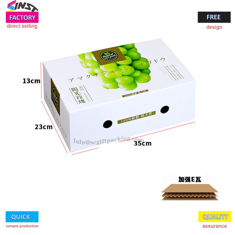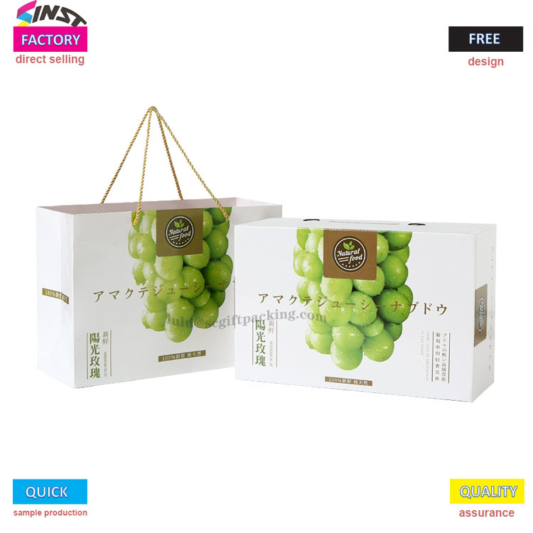 Die Fruchtuniversal-Handgeschenkschachtel für Trauben besteht aus verstärktem E-korrugiertem Pappmaterial mit einem hellen Traubenmuster auf der Oberfläche. Es ist mit einem grünen Tragemand an der Oberseite und dem auf dem Kastenkörper gedruckten Brand -Logo gepaart, wodurch unsere Kernservice -Philosophie eindeutig vermittelt wird - keine Notwendigkeit für Vermittler, um Preisunterschiede zu machen, und der gesamte Prozess von der Auswahl bis zur Massenproduktion wird von der Fabrik verwaltet.