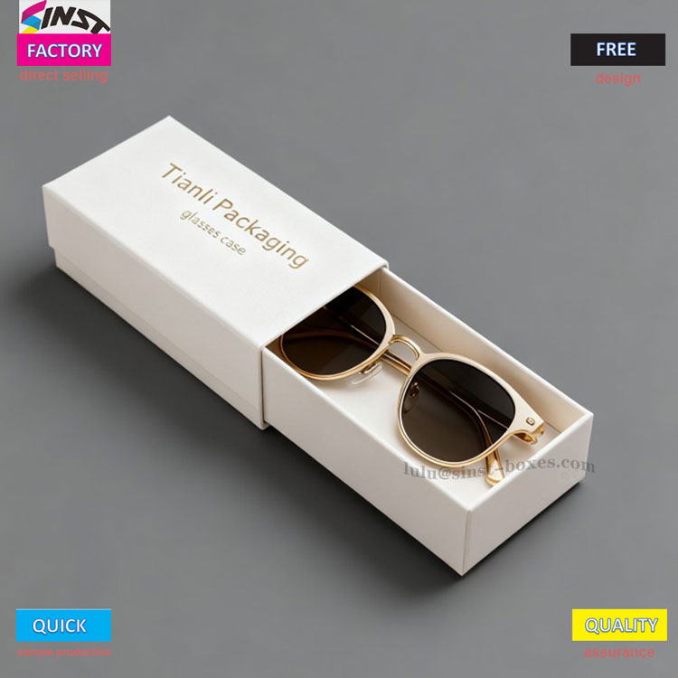 Da es sich um ein Marken-Brillenetui handelt, fühlt sich der heißgeprägte Text auf dem Deckel und dem Gehäuse des Etuis strukturiert an, was es auf den ersten Blick von anderen gewöhnlichen Brillenetuis unterscheidet. Die Vielseitigkeit der Brillen-Geschenkbox ist stärker ausgeprägt: Es handelt sich um eine normale Brillen-Aufbewahrungsbox für den täglichen Gebrauch mit übersichtlich angeordneten Schubladen; Wenn Sie Kunden oder Freunden Geschenke machen, verwandelt sich die gold-weiße Business-Verpackung im Handumdrehen in ein stilvolles Geschenk-Brillenetui; Wenn Sie es exklusiver möchten, können Sie auch eine Fabrik finden, die das Markenlogo oder die Segensbotschaft personalisiert und auf dem Kastenkörper anbringt und ihn so in ein einzigartiges, maßgeschneidertes Brillenetui aufwertet – es enthält nicht nur Brillen, sondern schenkt auch dem Empfänger Aufmerksamkeit.