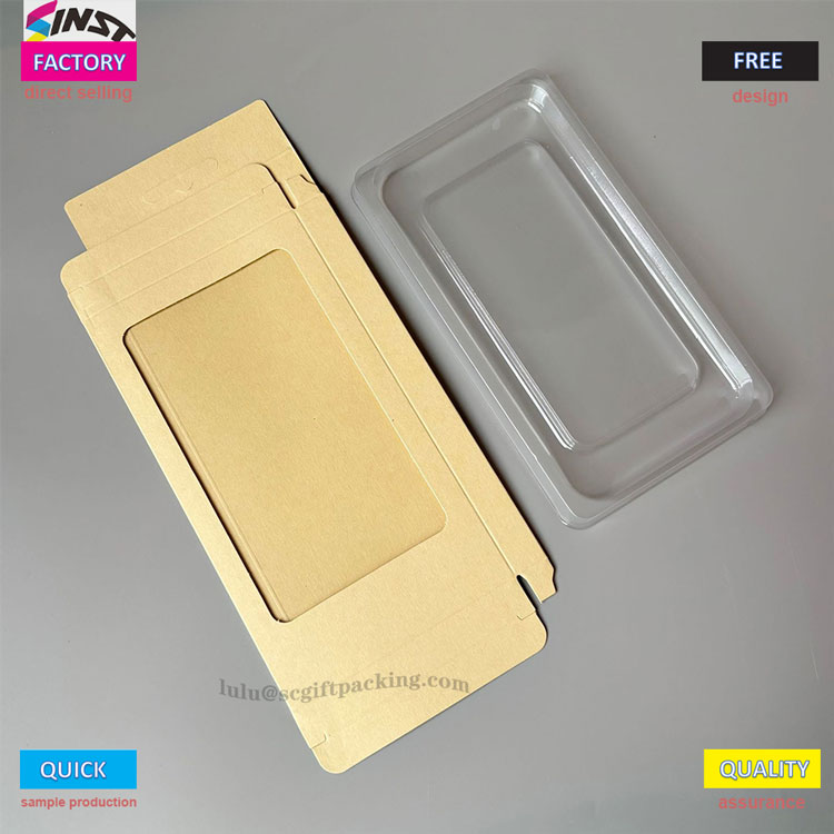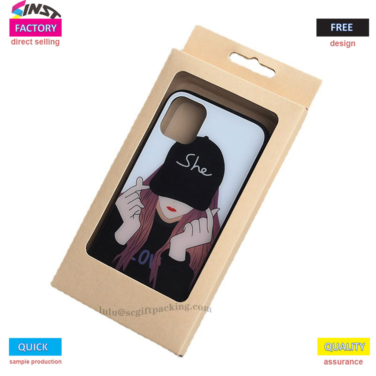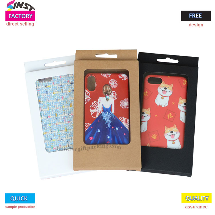 Diese Telefonkoffer -Verpackungsbox verfügt über ein "transparentes Fenster+mehrere Farboptionen" - Braun-, Weiß- und Schwarzverpackungskästen sind mit transparenten Fenstern ausgestattet, sodass Sie Cartoonmuster im Inneren sehen können, ohne die Box zu öffnen. Die Verpackungskiste verfügt über hängende Löcher und kann ohne Druckschäden flach versendet werden. Es ist auffällig, wenn es in Regale, Schränke und Fenster platziert wird. Es ist sowohl eine Telefonhülle als auch ein "dekorativer Gegenstand", das Praktikabilität und Ästhetik kombiniert.